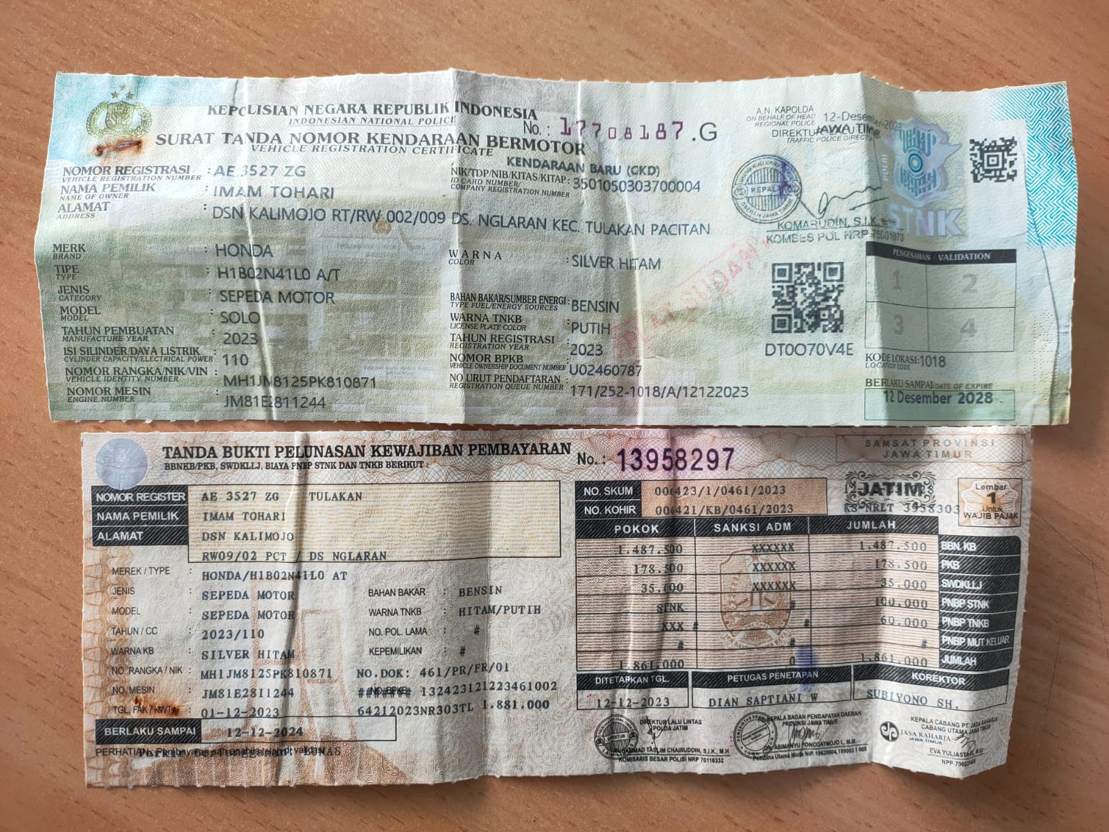 - Masa berlaku STNK12-12-2024