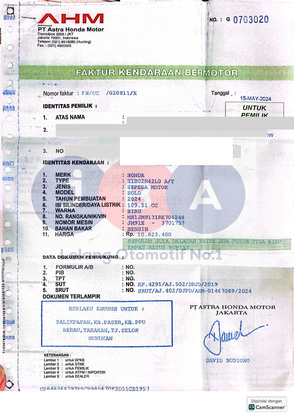 - Masa berlaku STNK21-05-2026