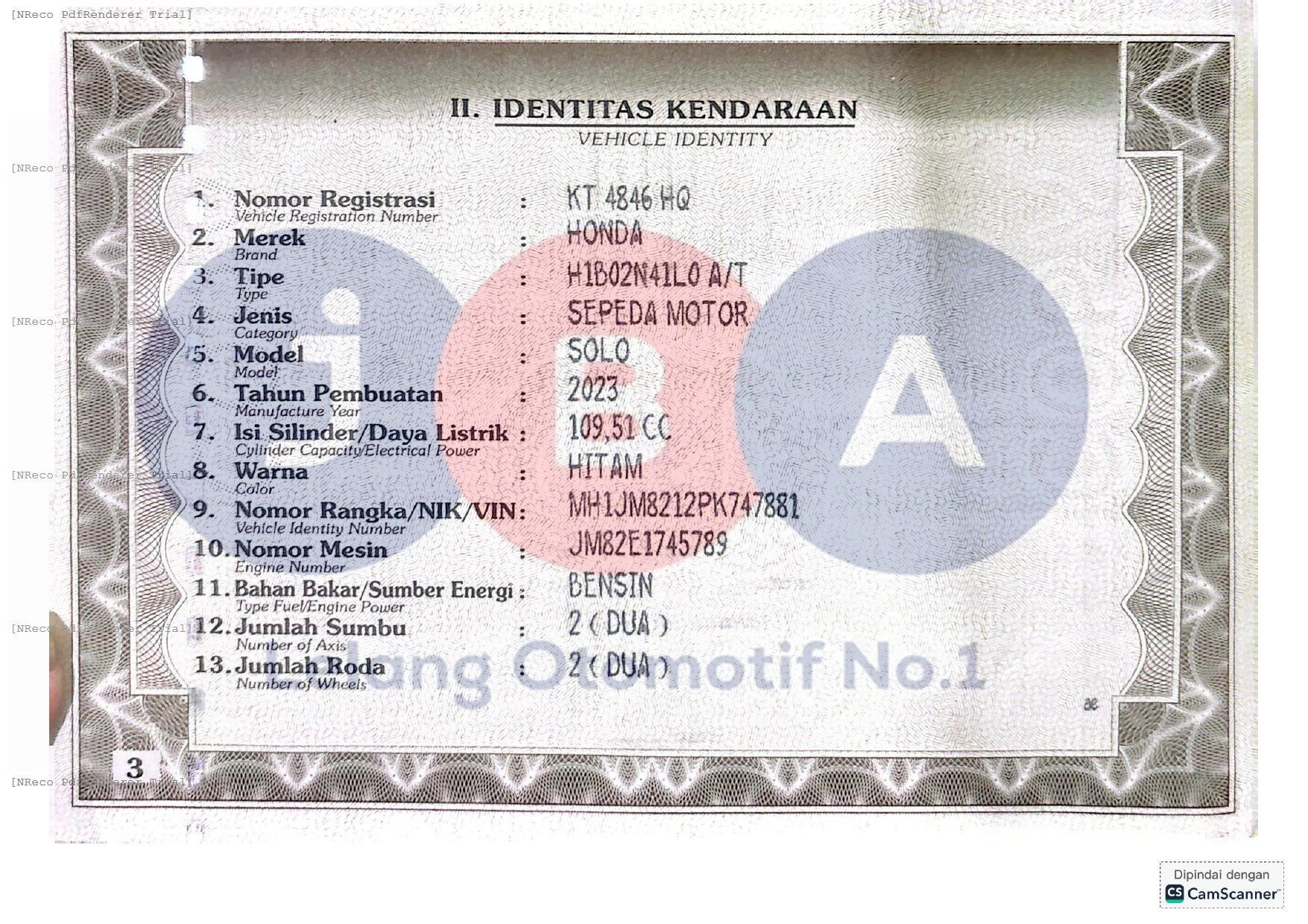 - Masa berlaku STNK04-03-2025