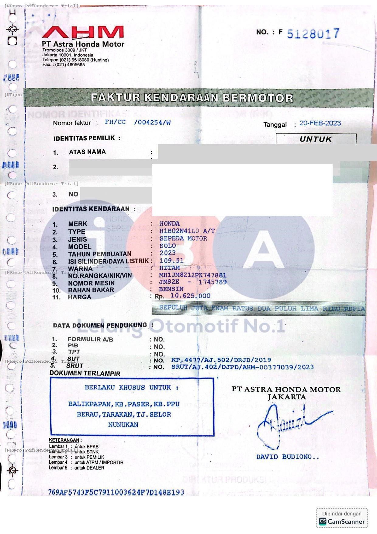 - No RangkaMH1JM8212PK747881