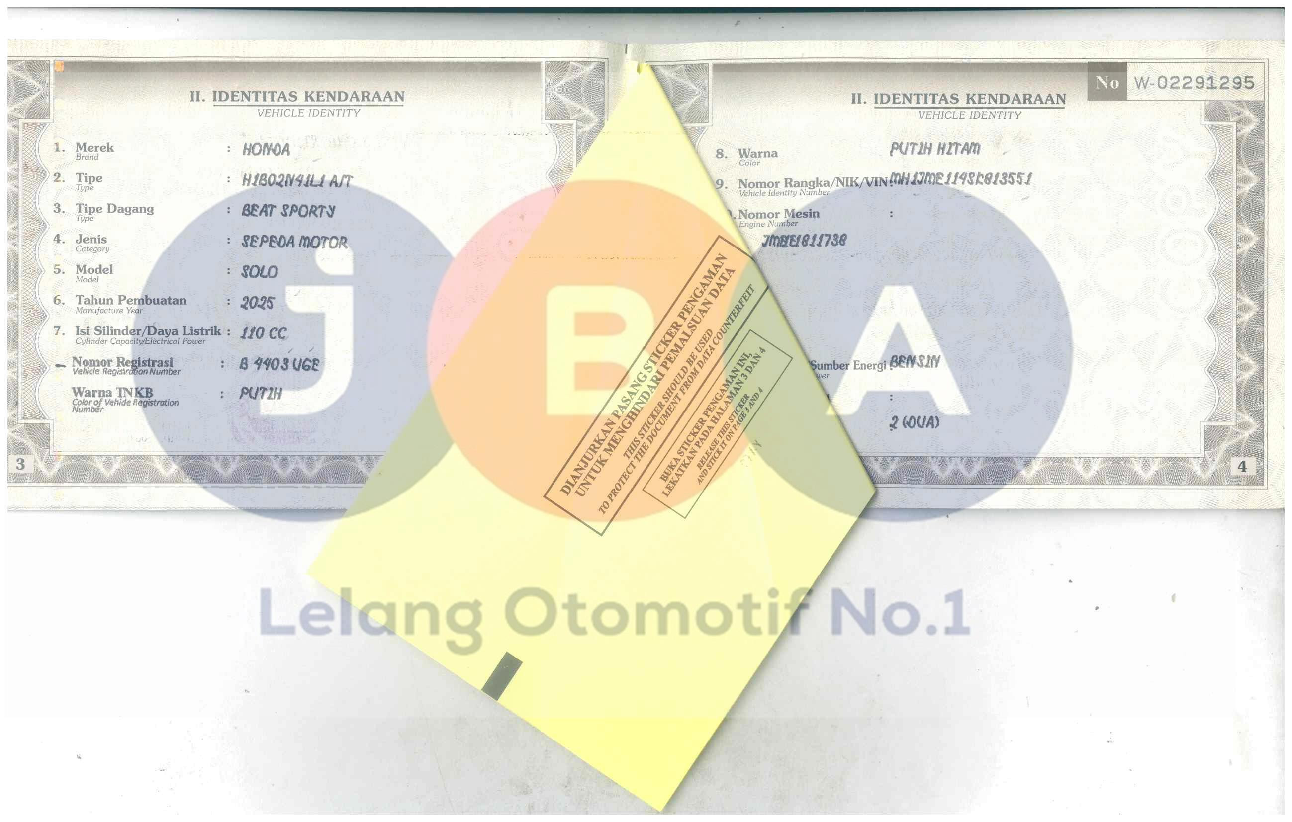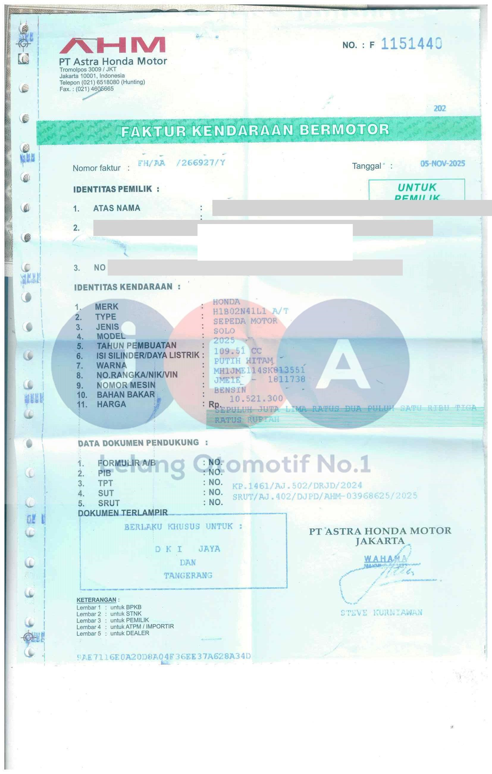 - Masa berlaku STNK10-11-2026