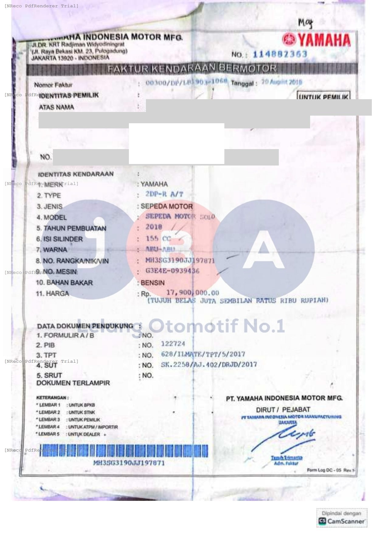 - No RangkaMH3SG3190JJ197871