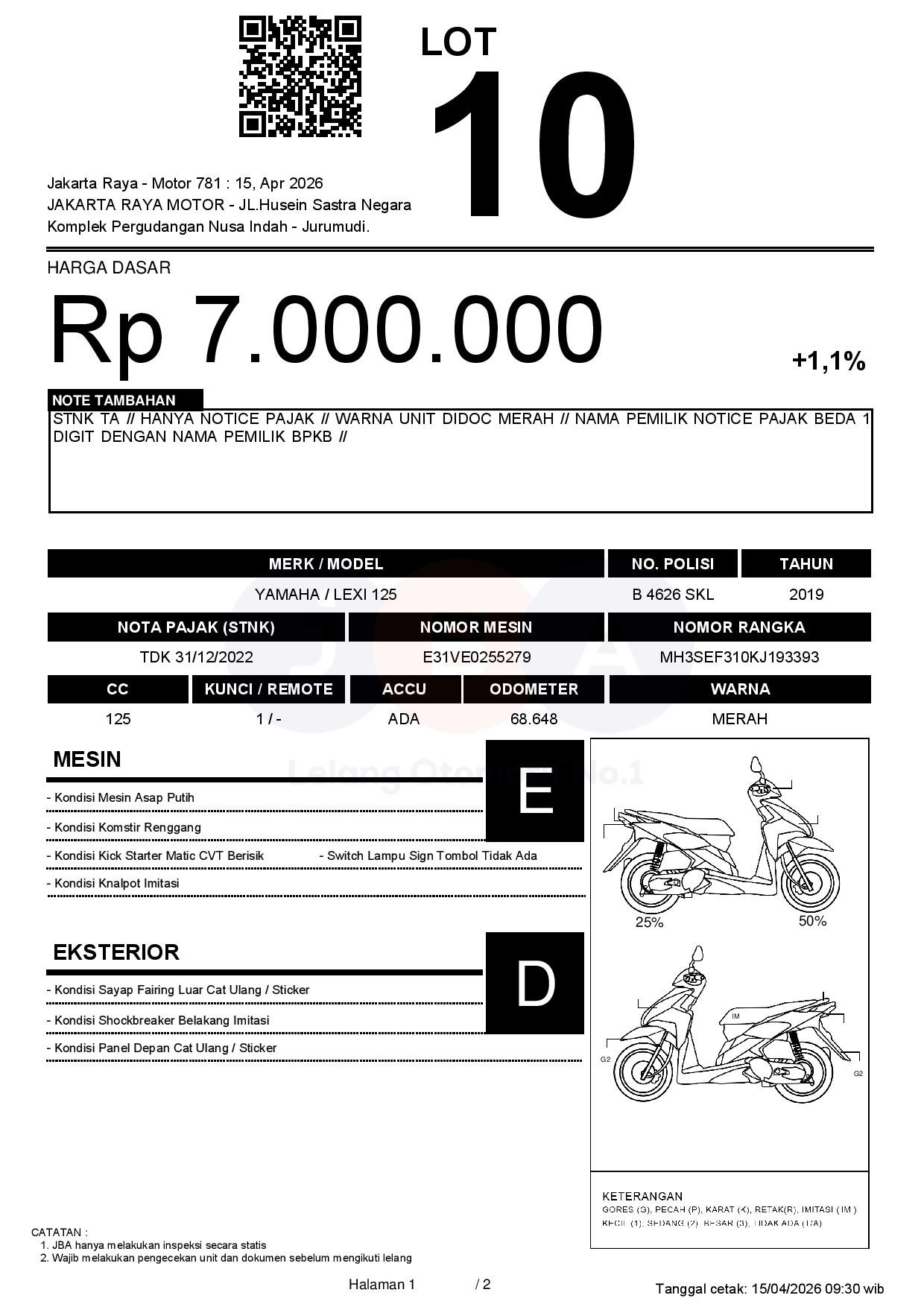 - NoteSTNK TA // HANYA NOTICE PAJAK // WARNA UNIT DIDOC MERAH // NAMA PEMILIK NOTICE PAJAK BEDA 1 DIGIT DENGAN NAMA PEMILIK BPKB //