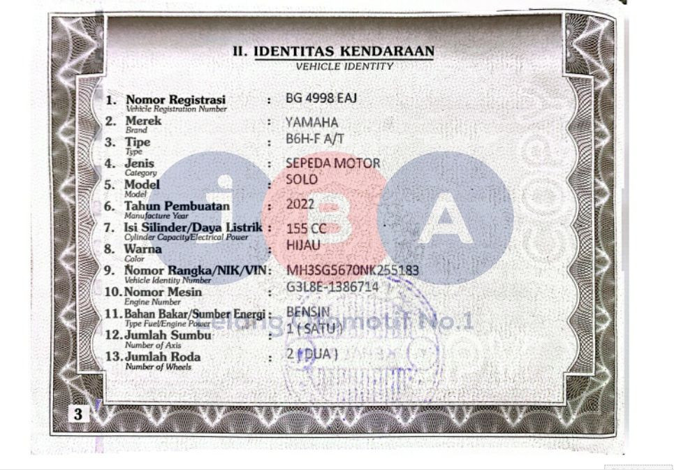 - Masa berlaku STNK09-12-2026